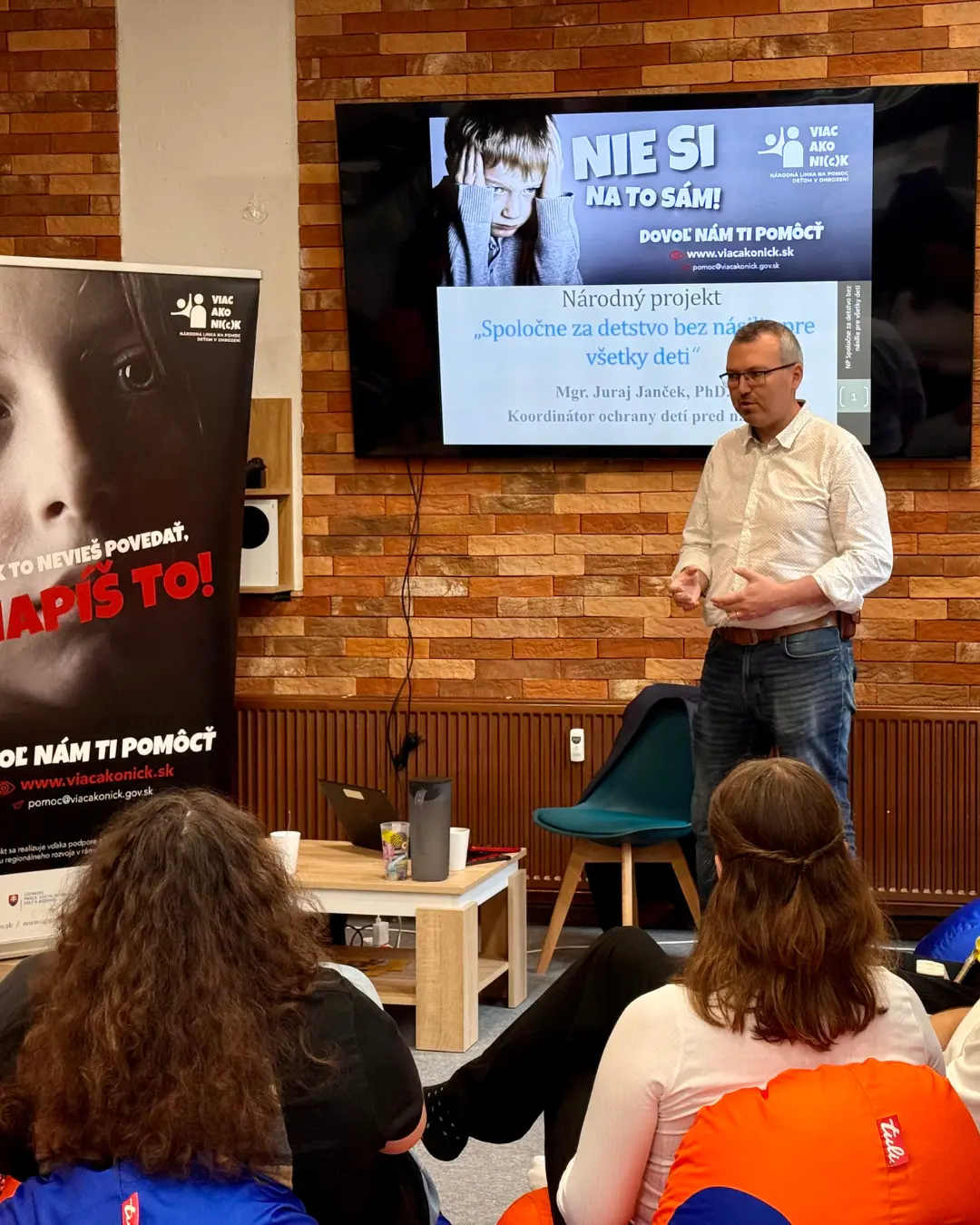 Druhé školenie viedol Juraj Janček, koordinátor ochrany detí pred násilím pre okres Trnava. Ukázal nám, ako rozpoznať signály zraniteľnosti, ako citlivo komunikovať s mladým človekom a kam a ako nahlásiť podozrenie na násilie tak, aby bola v prvom rade chránená obeť. Pre nás je to kľúčové, pretože v klubovni chceme byť bezpečný bod a mať jasný, profesionálny postup, nie iba dobrý úmysel.