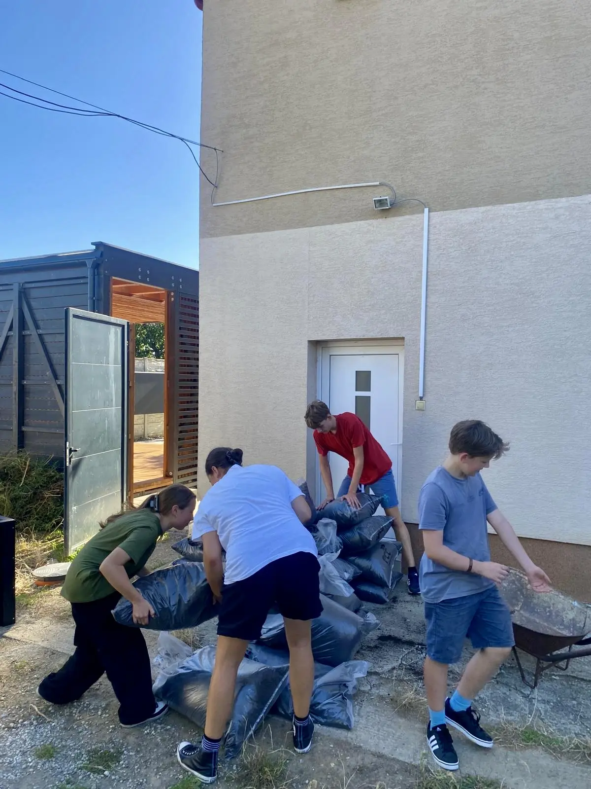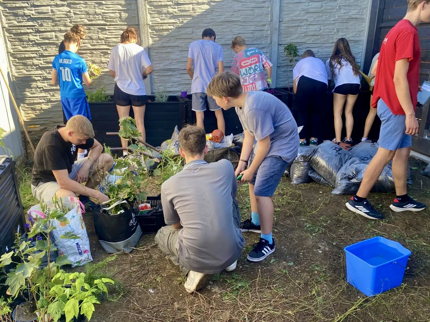Prípravy na projekt začali už počas júla a augusta. Počas horúcich letných dní sme sa viackrát stretli, aby sme spoločne vyčistili priestor, naviezli zeminu, pripravili vyvýšené záhony a vysadili prvé rastliny. Mladí sa učili, ako funguje kompostovanie, ako sa správne starať o pôdu, aké rastliny sa navzájom dopĺňajú a čo všetko potrebuje záhrada, aby dlhodobo prosperovala. Hoci nám počasie nie vždy prialo, nadšenie a odhodlanie nechýbalo.